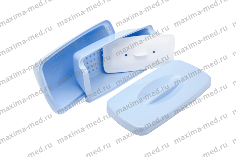 Конструкция контейнера позволяет легко закрывать крышку и обеспечивает ее плотное прилегание, что дает возможность сохранять необходимую концентрацию рабочего раствора. Контейнер изготавливается из нетоксичных, химически стойких полимерных материалов (поликарбонат, полипропилен), разрешенных к применению в изделиях медицинского назначения и устойчивых к длительному воздействия температур, используемых при разных режимах стерилизации паровым способом (автоклавирование), выдерживает санитарную обработку любыми средствами, исключает окрашивание любыми растворами.