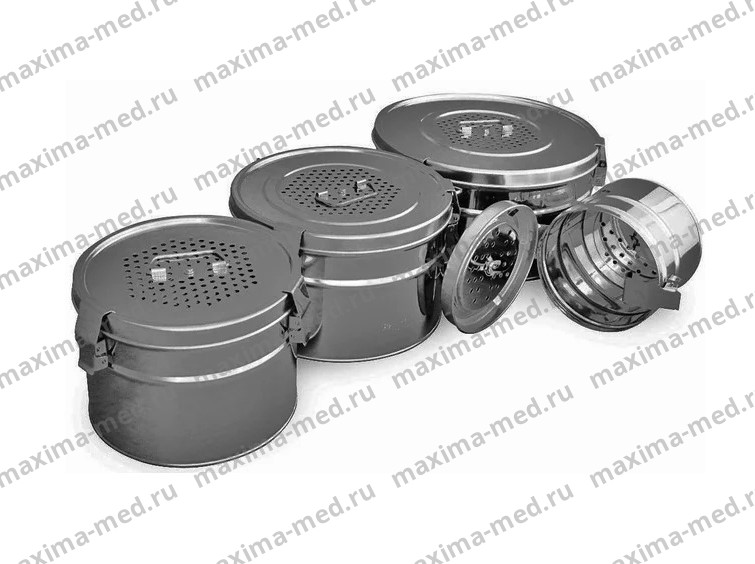 Коробка стерилизационная с фильтрами (бикс медицинский) круглая предназначена для размещения перевязочных материалов, операционного белья, хирургического инструмента и других предметов медицинского назначения с целью их стерилизации в паровых медицинских стерилизаторах и доставки к месту использования, а также стерильного хранения в течение 20 суток.  Металлические детали медицинского бикса изготовлены из коррозионностойкой стали.