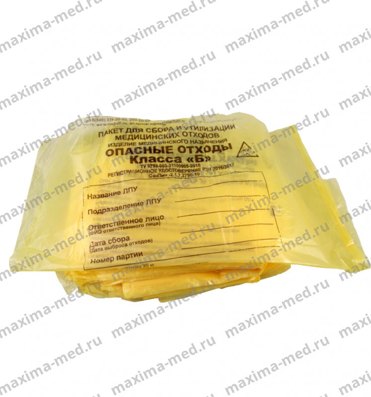 Пакеты (мешки) для утилизации медицинских отходов (сбора, хранения и удаления) в различных лечебно-профилактических учреждениях. Предназначены для надежного и правильного метода утилизации медицинских отходов класса Б согласно санитарно-эпидемиологическим правилам и нормативным актам.