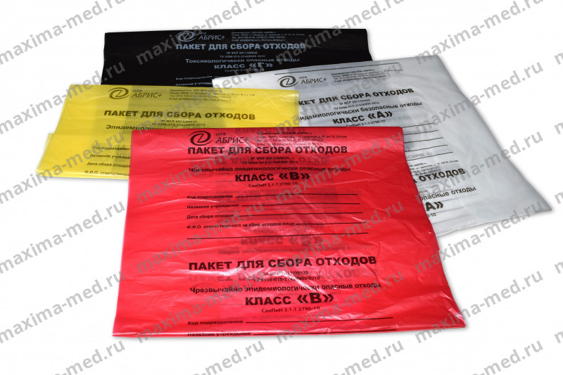 Пакеты (мешки) для утилизации медицинских отходов (сбора, хранения и удаления) в различных лечебно-профилактических учреждениях. Предназначены для надежного и правильного метода утилизации медицинских отходов класса А, Б, В, Г согласно санитарно-эпидемиологическим правилам и нормативным актам.