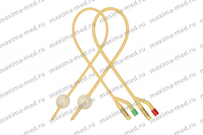 Катетер Фолея двухходовой имеет закрытый конец и 2 боковых отверстия (дистальный конец) и эластичный антивозвратный клапан (проксимальный конец), предназначенный для наполнения баллона шприцем без иглы и предотвращающий утечку воздуха и жидкости.