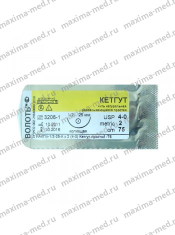 Свойства: шовная нить рассасывается в ткани естественным путем. Через 7-12 дней после имплантации сохраняется примерно 50%. Срок полной абсорбции – 50….70 дней.