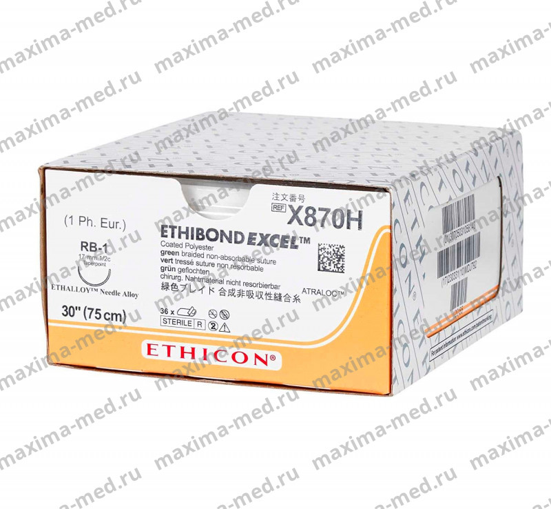 Нерассасывающаяся стерильная хирургическая нить. Этибонд предназначается для аппроксимации и\или лигирования мягких тканей, включая использование в сердечно-сосудистой, глазной хирургии и нейрохирургии. Шовный материал покрыт полибутилатом, что придает ему гладкость и облегчает прохождение через ткани, а также повышает манипуляционные свойства шовного материала. Нити могут иметь различную толщину и длину, поставляться отдельно или с прикрепленными иглами из нержавеющей стали различных типов и размеров.