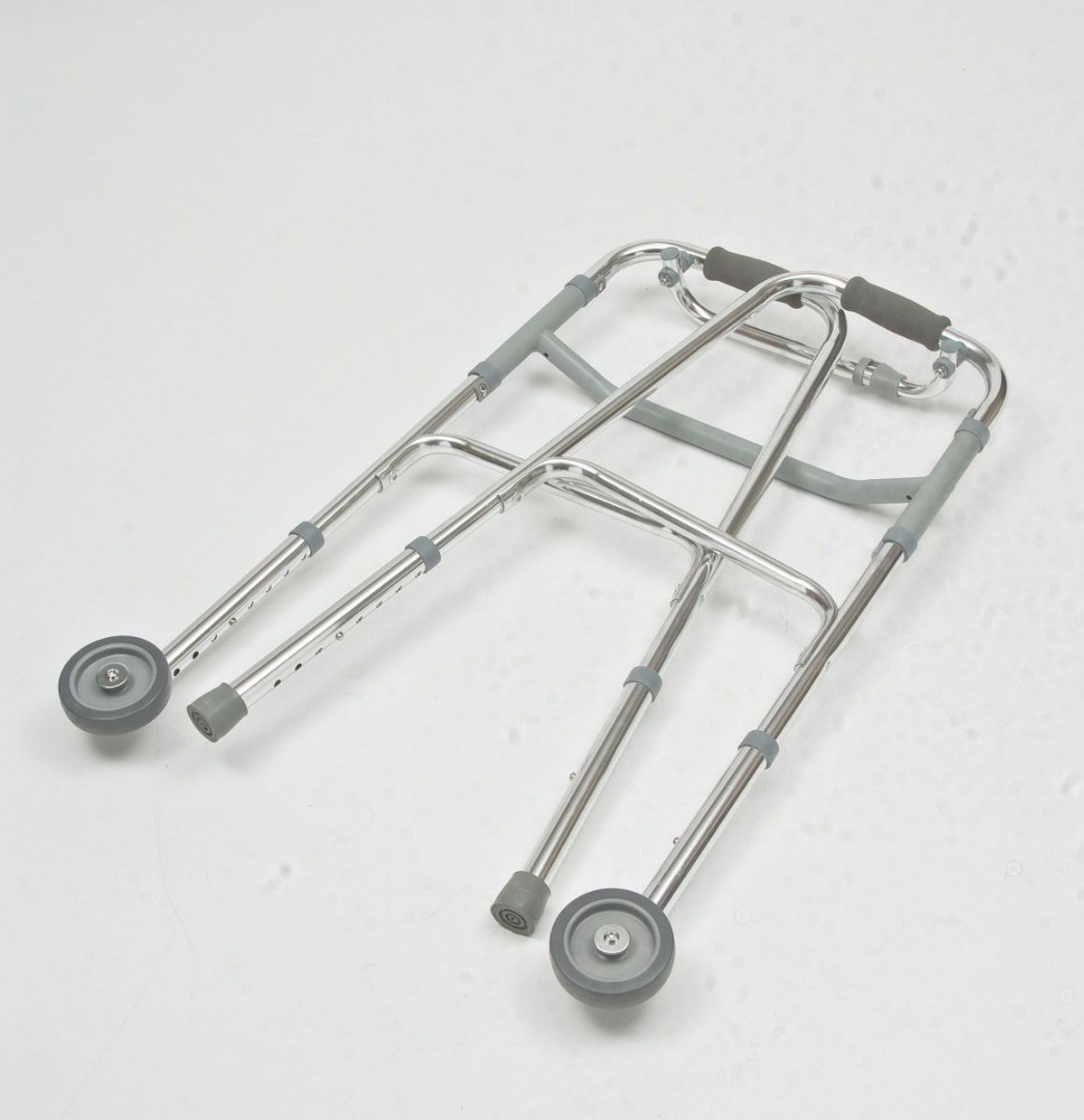 Ходунки двухколесные изготовлены из легкого алюминиевого сплава. Рама снабжена противоскользящими ручками. Ходунки как вид реабилитационного оборудования необходимы в послеоперационный или посттравматический период, когда движение является основным лечебным фактором для быстрого восстановления. Поддерживают больного во время ходьбы. Также используются при возрастных изменениях опорно-двигательного аппарата и при хронопатологиях нижних конечностей. Роллейтор снабжен колесами, что позволяет не переставлять, а перекатывать ходунки вперед. Задние ножки выступают в роли тормоза, не давая ходункам двигаться в момент переноса веса тела с ног на роллейтор.