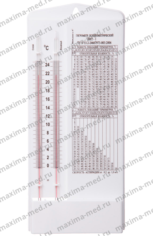 Гигрометры ВИТ 1– предназначены для измерений в помещениях температуры окружающего воздуха от 0 до 25 градуса Цельсия и относительной влажности от 20 до 93%. Применяется для измерения относительной влажности воздуха и температуры в складских помещениях, материальных комнатах, шелковичных, тепличных, птицеводческих хозяйствах.
