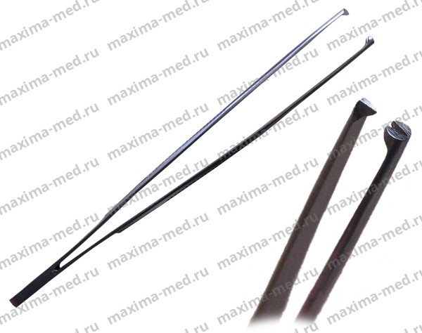 Пинцеты – служат для захвата и удержания различных тканей. На рабочей поверхности концов браншей этого пинцета имеются зубцы: на одной губке один, на другой – два, между которыми при смыкании пинцета плотно входит зубец первой губки.
