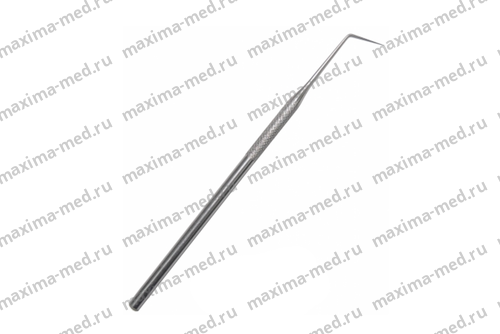 Зонд зубной изогнутый - нструмент в виде изогнутого в форме серпа тонкого металлического стержня с ручкой, применяемых для исследования дефектов эмали и зондирования входа в канал зуба. Для обнаружения кариозных полостей, расположения устьев каналов и размягченного дентина.