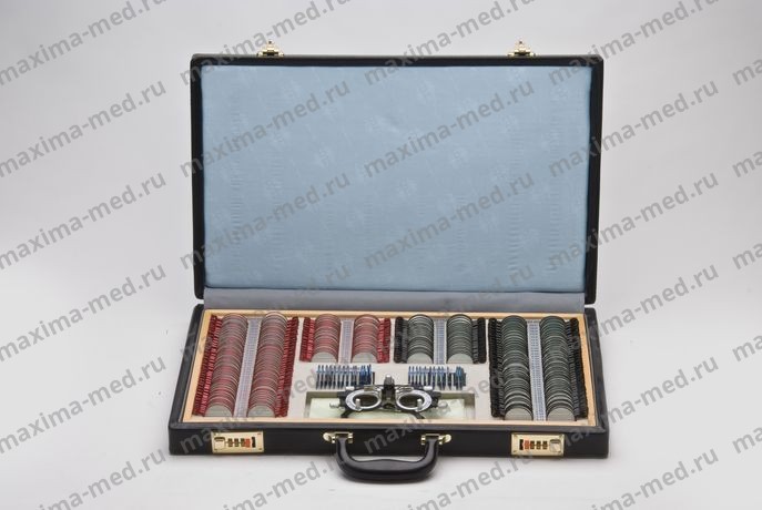 Комплект пробных очковых линз, с оправой на 266 линз, предназначен для обследования отклонений зрения: миопия, гиперметропия, астигматизм и пресбиопия для обследования страбизма и цветовой слепоты.Также набор используется для подбора очков и линз. Набор пробных очковых линз укомплектован пробной универсальной оправой ОПУ и поставляется в кожаном чемодане. Внесен в Госреестр средств измерений под №36379-07.