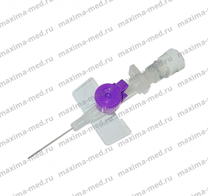 Катетер внутривенный 26G (фиолетовый) с доп.портом и крылышками. Предназначен для длительного (до 3-х суток) введения растворов лекарственных веществ в периферические вены пациента.