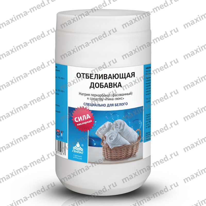 Обладает отбеливающими свойствами и в комплексе с моющим средством "Ника-Люкс" легко удаляет пятна травы, крови и других трудновыводимых загрязнений. Предназначено только для белого белья!