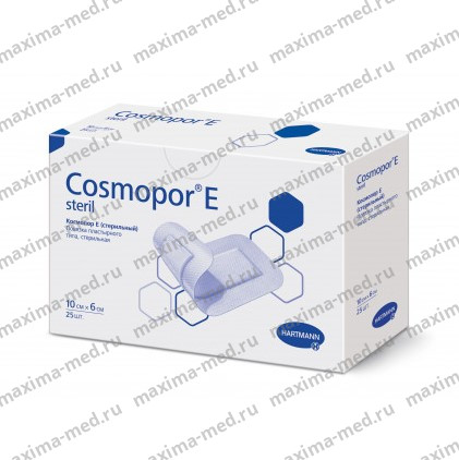 Самоклеющиеся стерильные повязки Космопор Е Стерил (Cosmopor E Steril) выпускает фирма Paul Hartmann (Испания). Показания к применению: повязки Cosmopor E Steril могут применяться при незначительных повреждениях кожи в качестве фиксирующего средства для других лечебных повязок, а также как самоклеящаяся послеоперационная повязка.