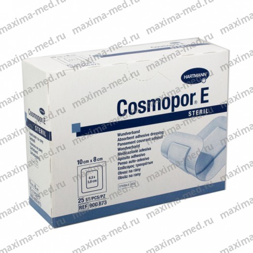 Самоклеющиеся стерильные повязки Космопор Е Стерил (Cosmopor E Steril) выпускает фирма Paul Hartmann (Испания). Показания к применению: повязки Cosmopor E Steril могут применяться при незначительных повреждениях кожи в качестве фиксирующего средства для других лечебных повязок, а также как самоклеящаяся послеоперационная повязка.