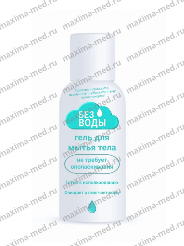 Гель для мытья тела «БЕЗ ВОДЫ». Бережно очищает кожу, не требует смывания водой. Позволяет полноценно очистить кожу и избавиться от запаха. Поглощает загрязнение. После стирания полотенцем остатки распадаются, не оставляя следов. Без содержания спирта.