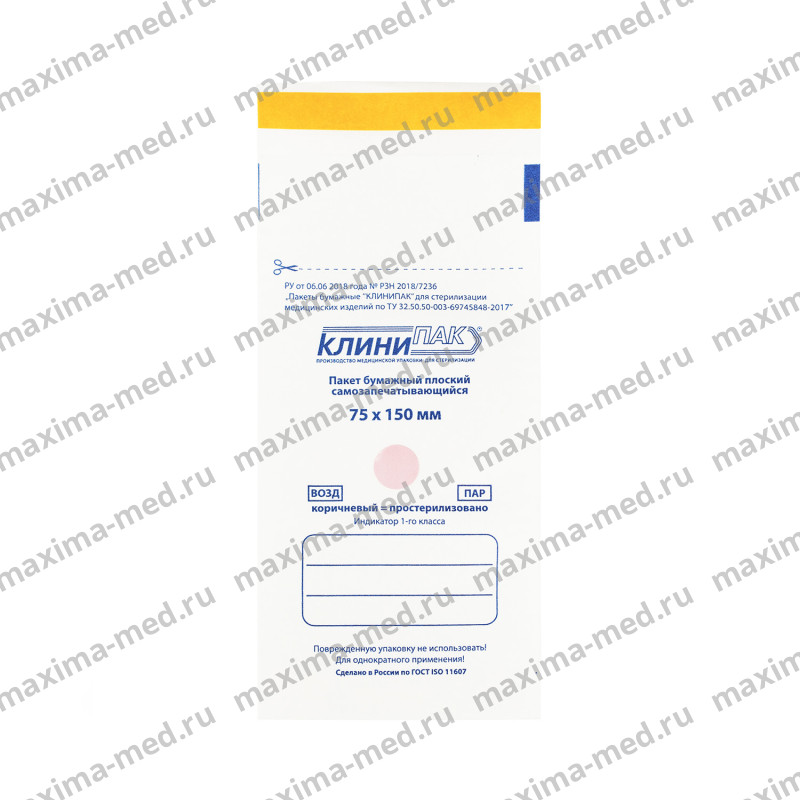 Пакеты из белой влагопрочной бумаги самоклеящиеся для паровой, воздушной, пароформальдегидной, этиленоксидной и радиационной стерилизации легко проницаемы для соответствующих стерилизующих агентов, в закрытом виде непроницаемы для микроорганизмов, сохраняют