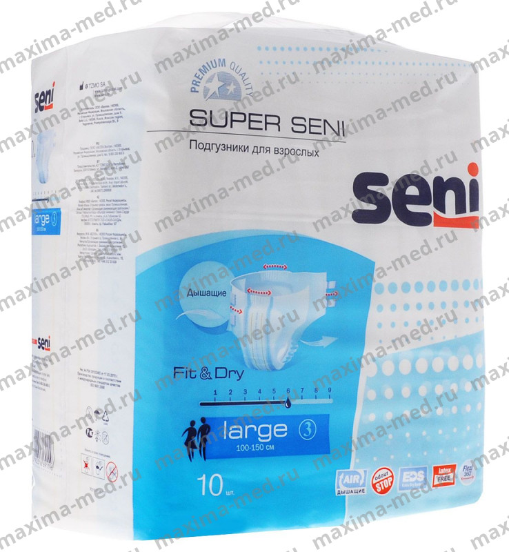 Подгузники для взрослых размера L (или №3) рассчитаны на пациентов с обхватом талии от 100 до 150 см. В зависимости от марки диапазон может немного варьировать в пределах этих значений.