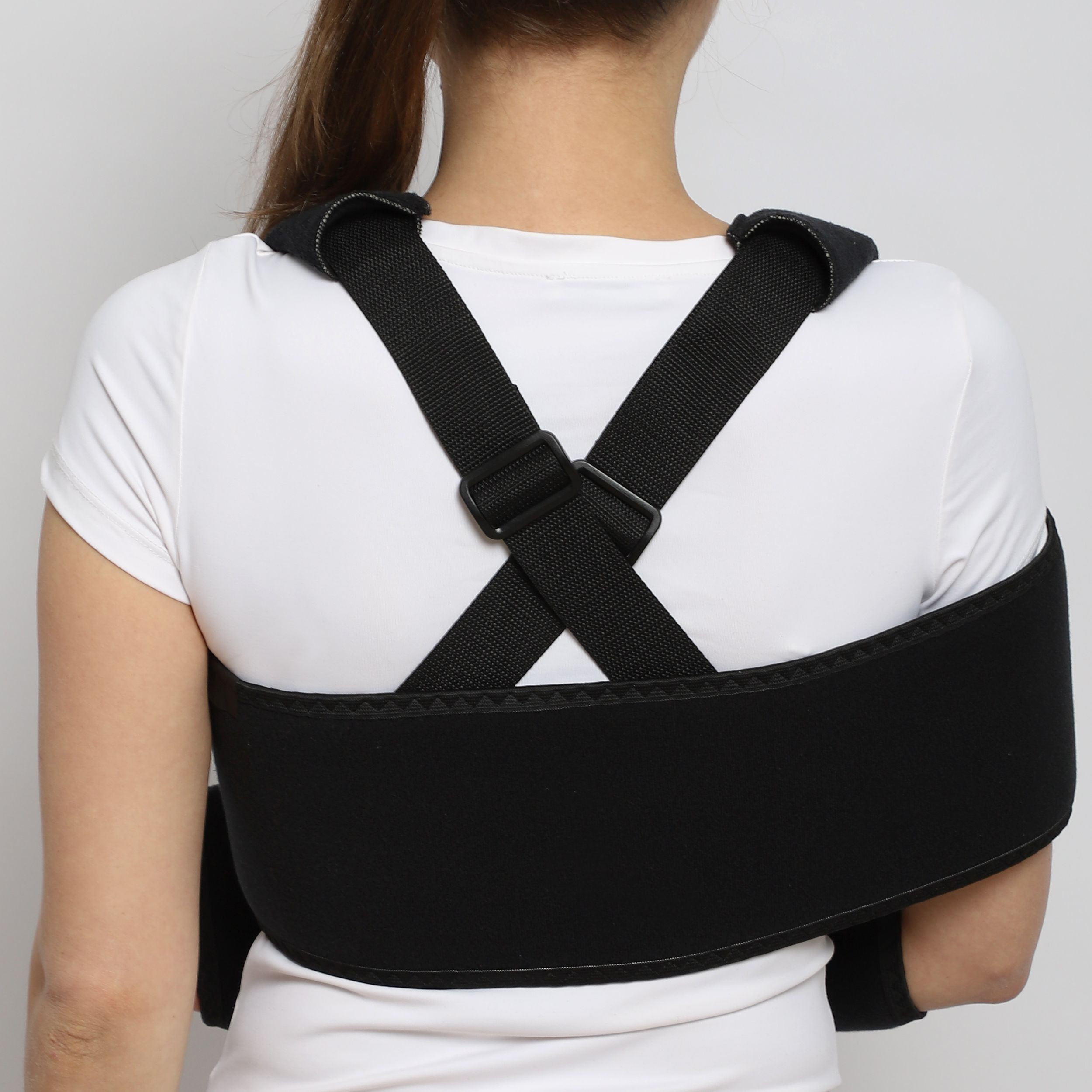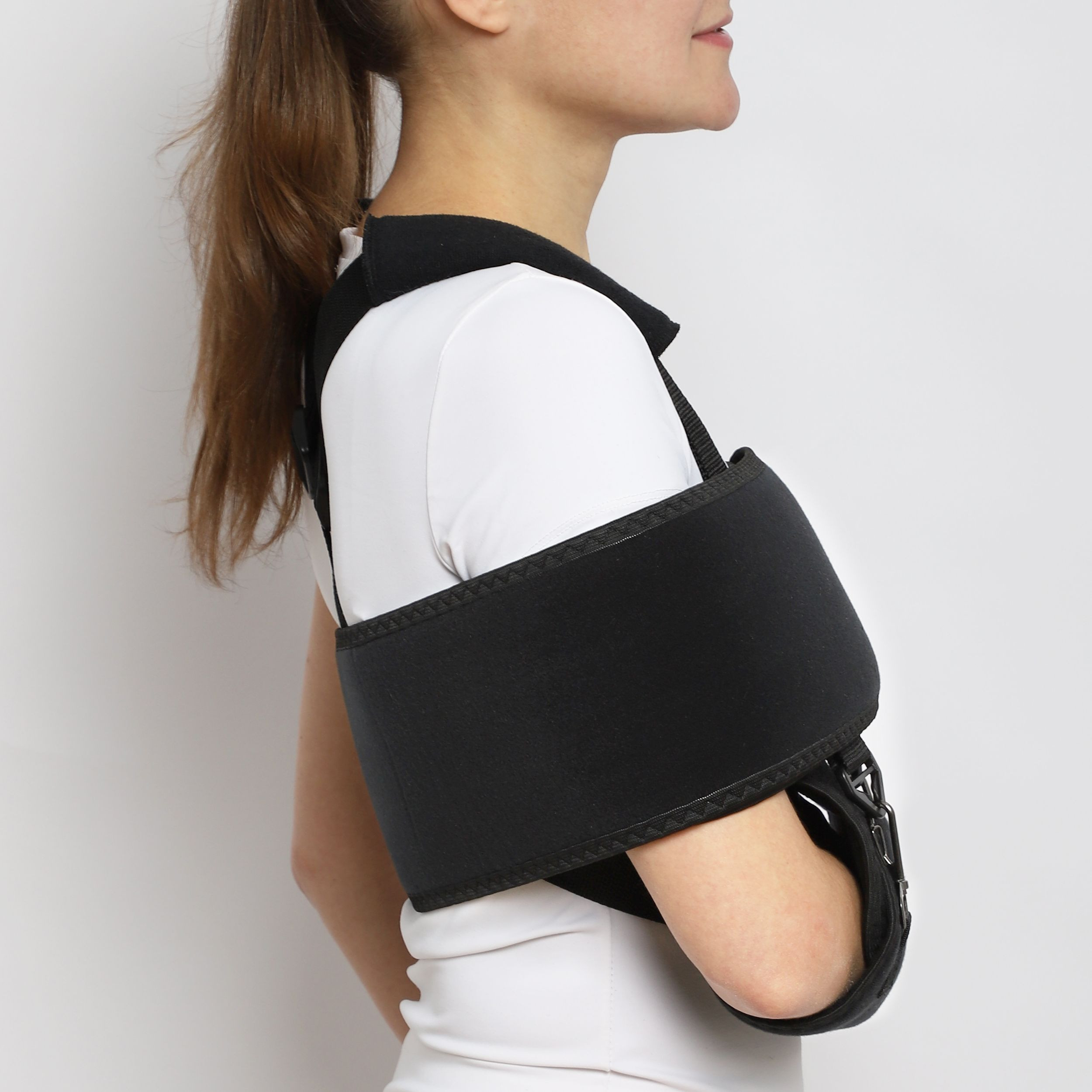 • Съемный пояс прижимает руку к туловищу