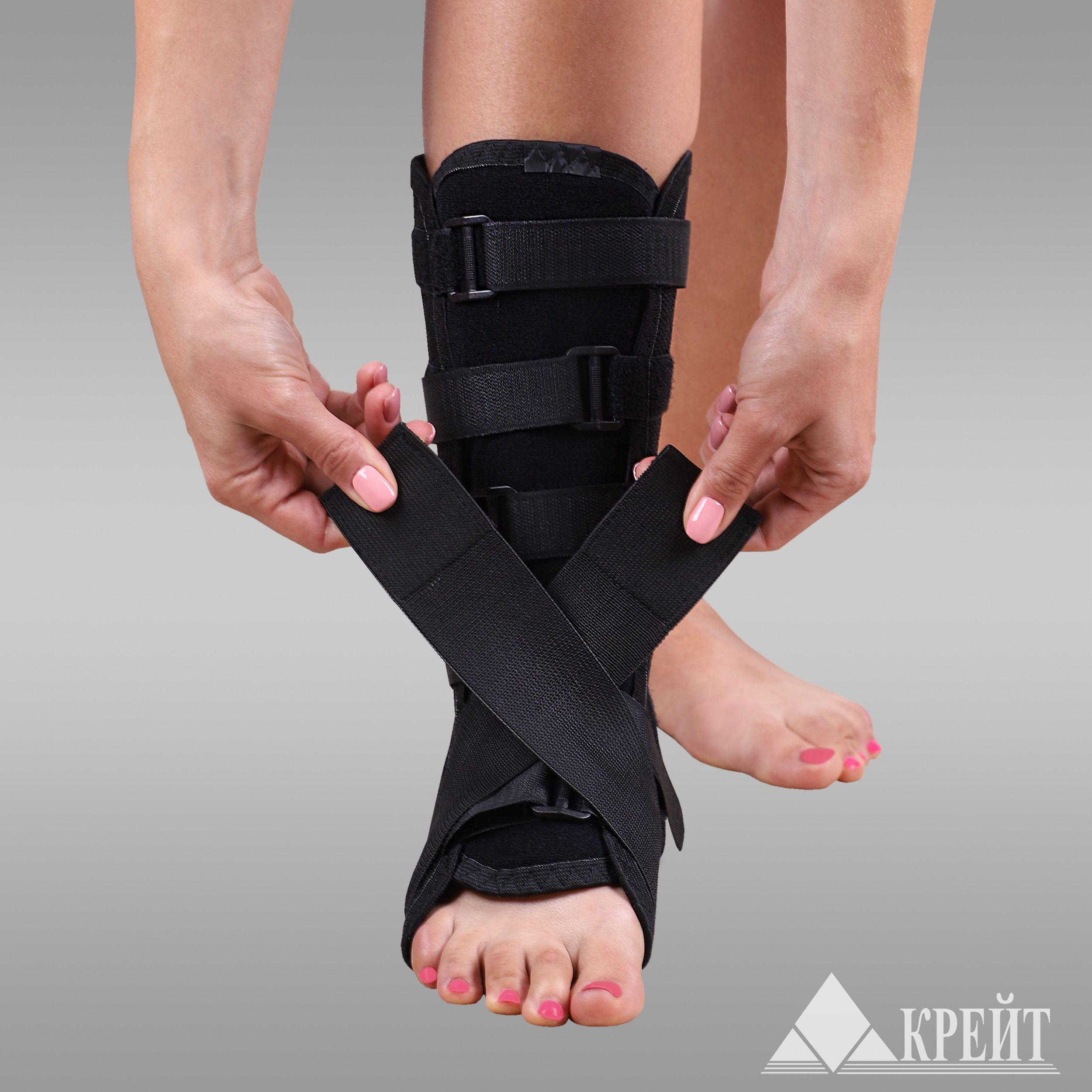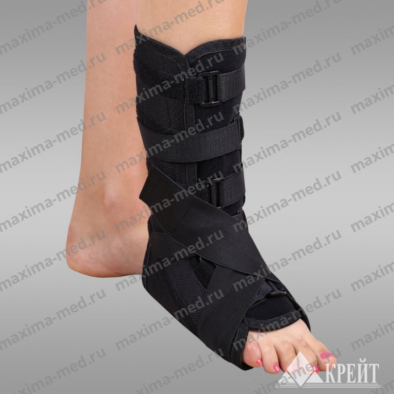 Цвет и конструкция готового изделия могут отличаться от представленных на фото без нарушения функциональных свойств. Воздействие: Жесткая фиксация и стабилизация голеностопного сустава. Предотвращает пронацию и супинацию, сохраняя тыльное и подошвенное сгибание в суставе.