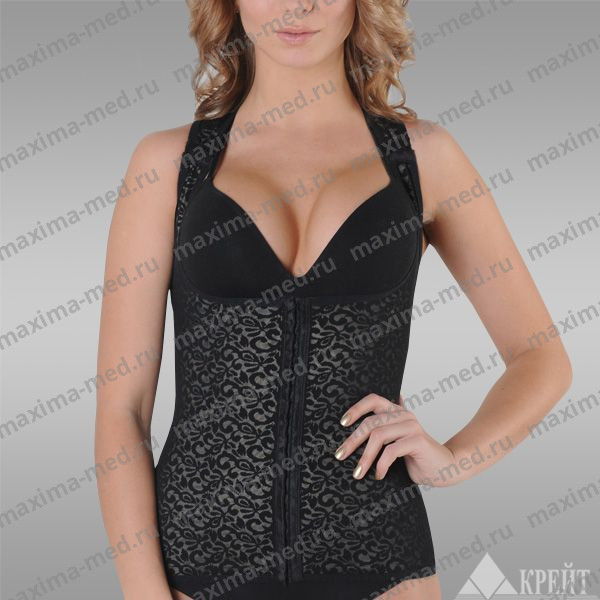 • Степень компрессии можно регулировать с помощью трехрядной застежки на крючки, расположенной спереди и на бретелях изделия