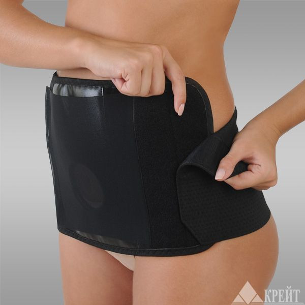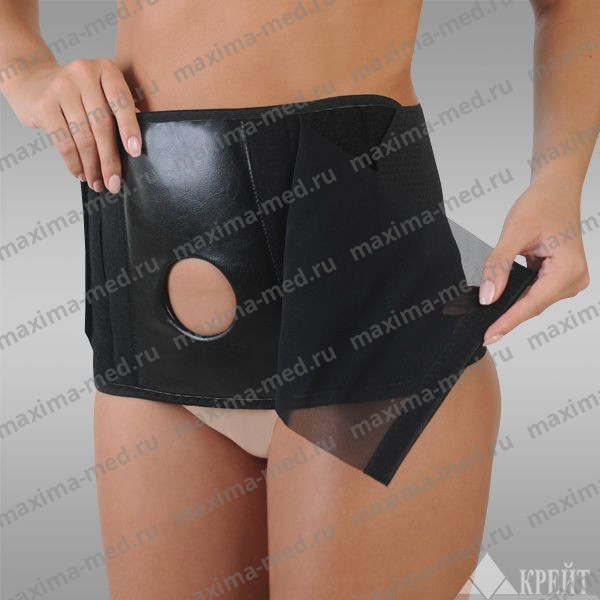 - Застегните бандаж с помощью жастежек Velcro так, чтобы отверстие оказалось области стомы