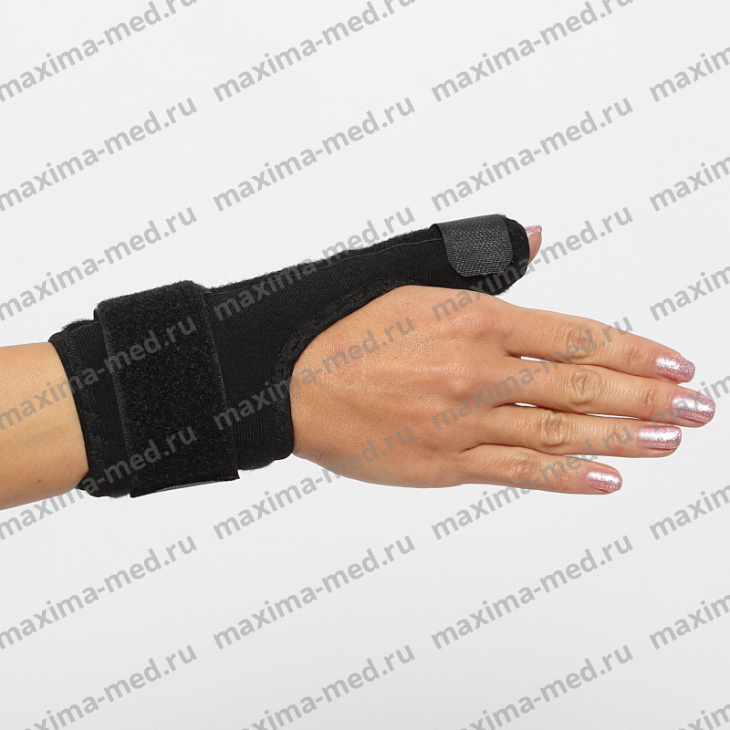 • Имеет съемную металлическую пластину анатомической формы длиной 17 см, которая ограничивает движение в суставе большого пальца